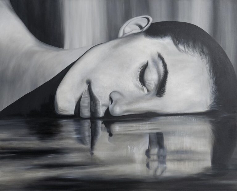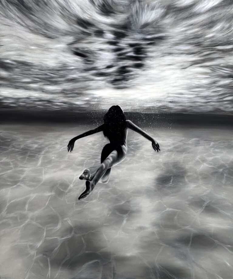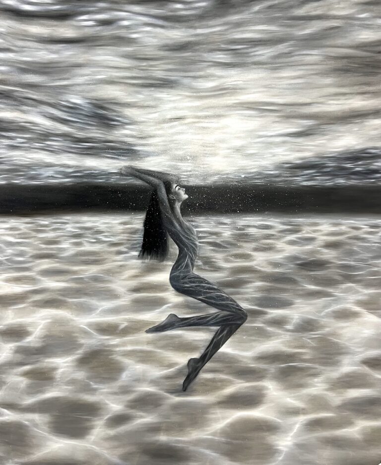 «Flow» symbolizes the convergence between the inner self and its external reflection. The works capture a space of serene introspection, where the calm of flowing is appreciated.